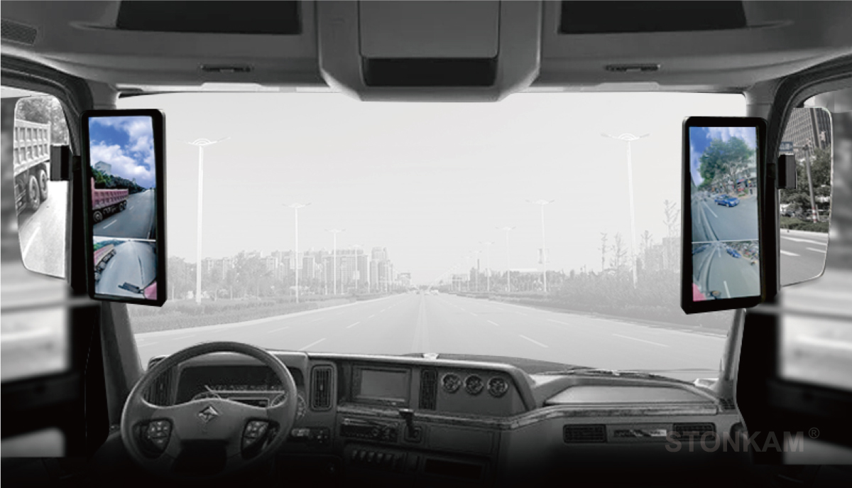 建機・トラック・バス向けのダブルスクリーン高解像度デジタルバックミラー死角監視システム