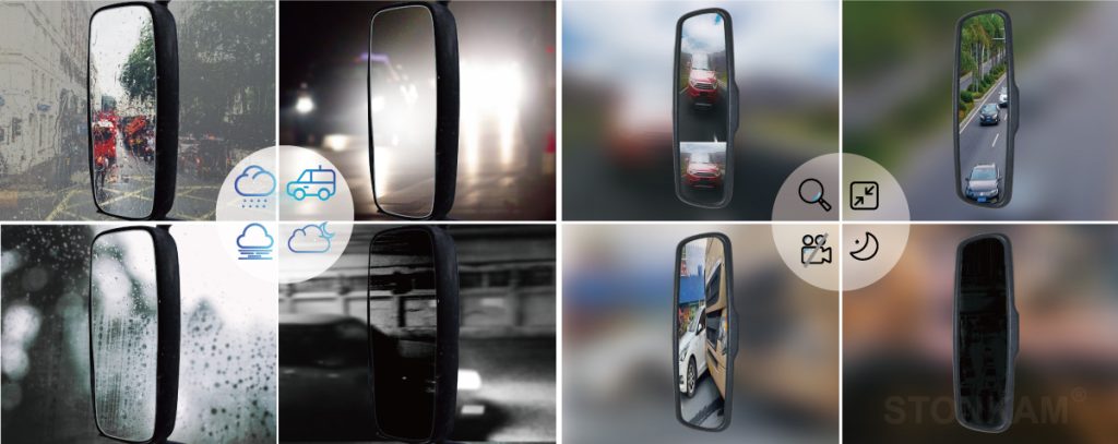 【従来のバックミラーに代わる】従来のバックミラーが夜間の視野が悪く、雨や雪、霧の天気が視線に影響し、強い反射光で見づらいという問題を解決します。