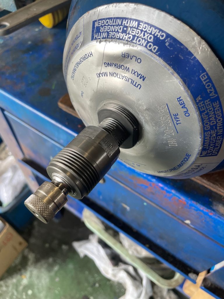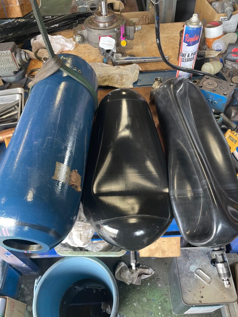 風車のピッチ制御に使用しているアキュムレータ、海外製が多いのですがブラダ(窒素ガス用のゴム)の破損による交換がつきものです。